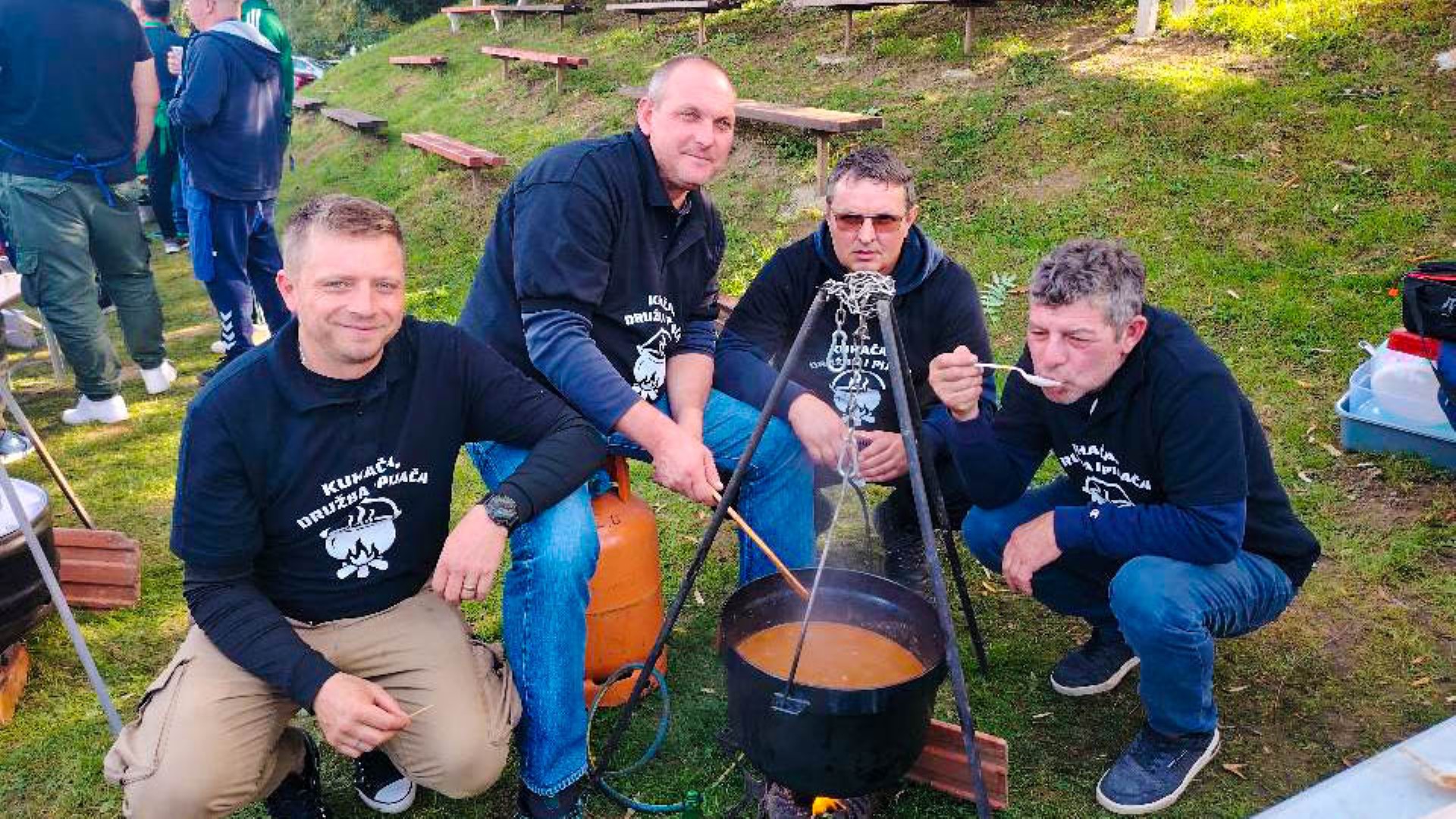 Tijekom kuhanja, atmosfera je bila sve samo ne natjecateljski napeta, a dominirali su smijeh, druženje i pjesma dok su posjetitelji obilazili ekipe i s nestrpljenjem očekivali trenutak kušanja.
