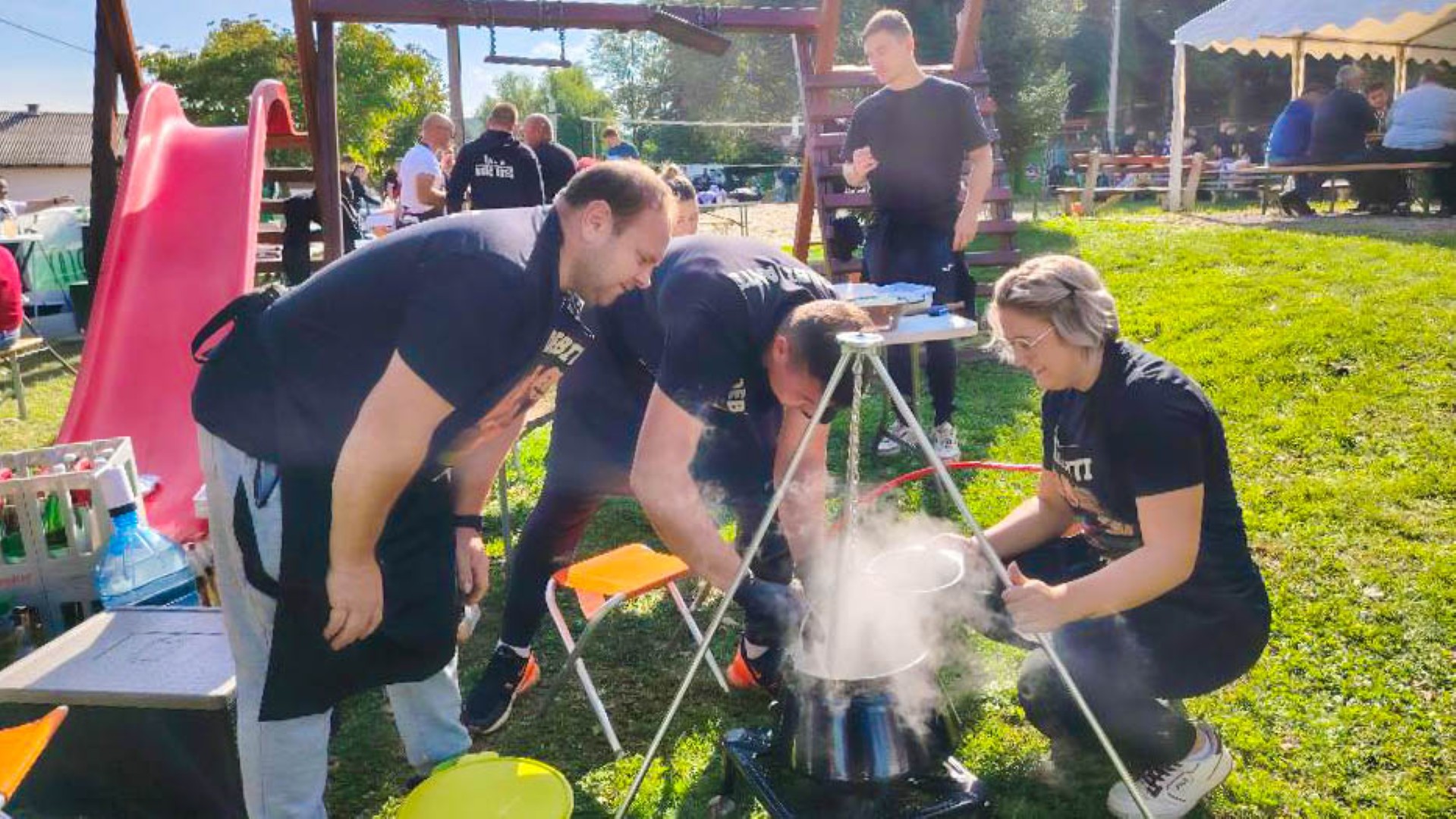 Tijekom kuhanja, atmosfera je bila sve samo ne natjecateljski napeta, a dominirali su smijeh, druženje i pjesma dok su posjetitelji obilazili ekipe i s nestrpljenjem očekivali trenutak kušanja.