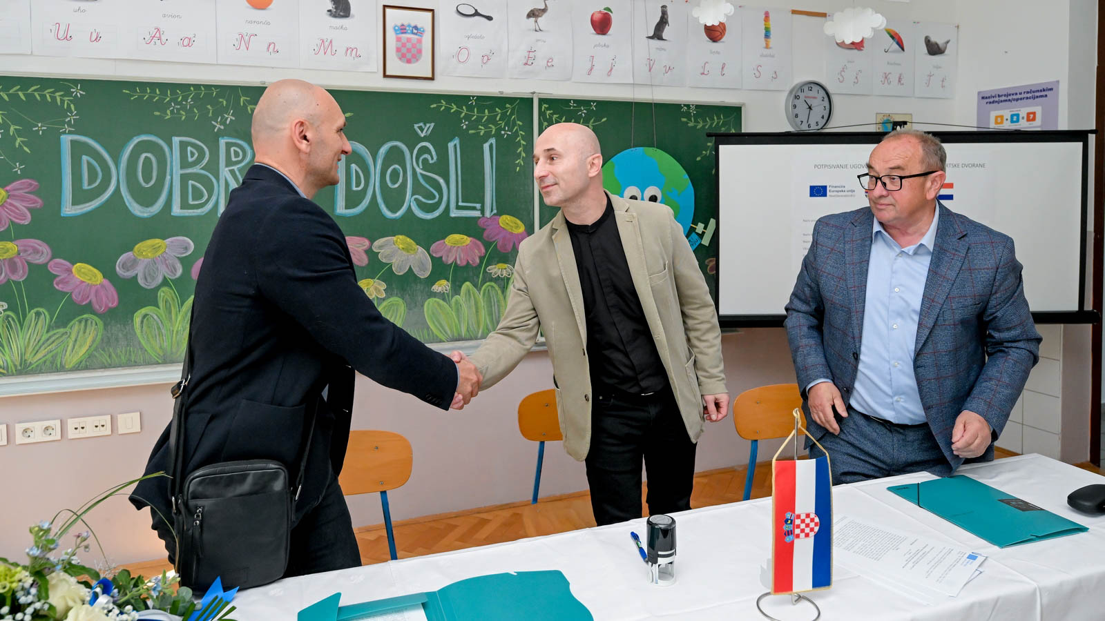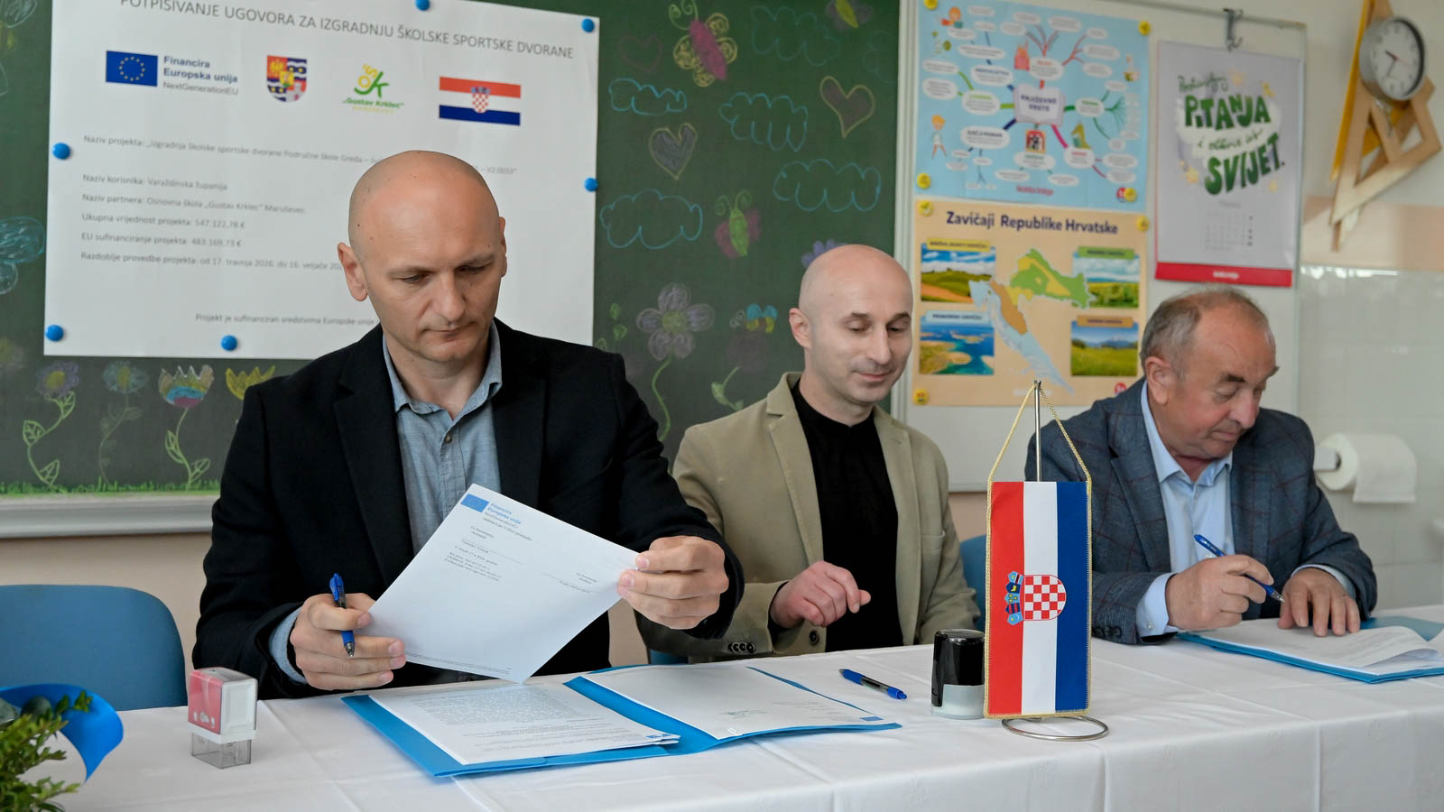 Ugovor je u nazočnosti župana Anđelka Stričaka, resornog pročelnika dr. sc. Miroslava Huđeka, načelnika Općine Maruševec Maria Klapše, predsjednika Općinskog vijeća Josipa Špoljara, općinskog vijećnika Damira Makovca, članova školskog odbora te nastavnika potpisao ravnatelj Osnovne škole „Gustav Krklec“ Tomislav Vincek sa Zdravkom Roginom, prokuristom tvrtke MIPCRO d.o.o. iz Ivanca.